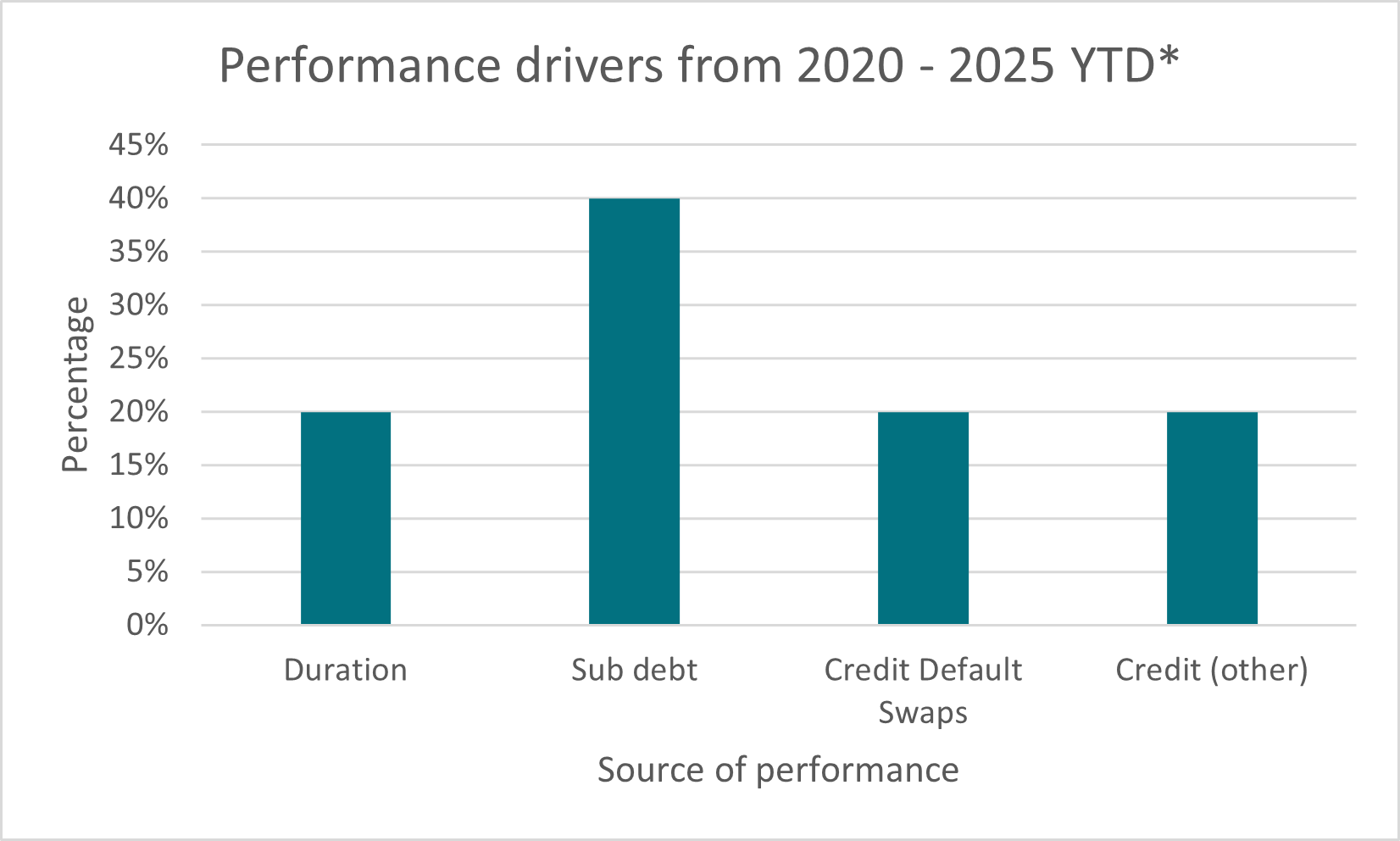 Source: AXA IM, as of 30 September 2025 Performance drivers calculated from a Total Return strategy between 2020 and 2025 YTD. *YTD as of 30 September 2025. Past performance is not a reliable indicator of future results.