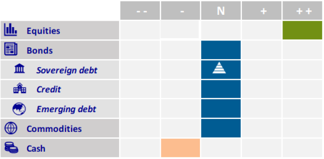 We have increased our allocation to equities, as the current environment remains supportive for risk markets. The earnings season was a resounding success on both sides of the Atlantic, albeit to differing degrees. Potential policy accommodation from the Fed has merely been delayed. The little macroeconomic data available, complemented by private-sourced alternative data, has not indicated a slowdown in activity. The Atlanta Fed’s ‘nowcast’ for US GDP growth is even cruising close to 4% on an annualised basis. In Europe, survey data has held up despite a persistent risk of a more challenging deflationary environment in its largest economies.